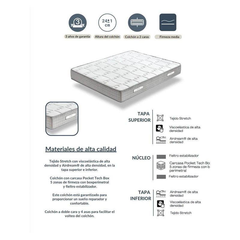 Colchon 180X200 Lumbar Tech Con Refuerzo Lumbar+Fieltro Estabilizador+ Pocket Tech Box.