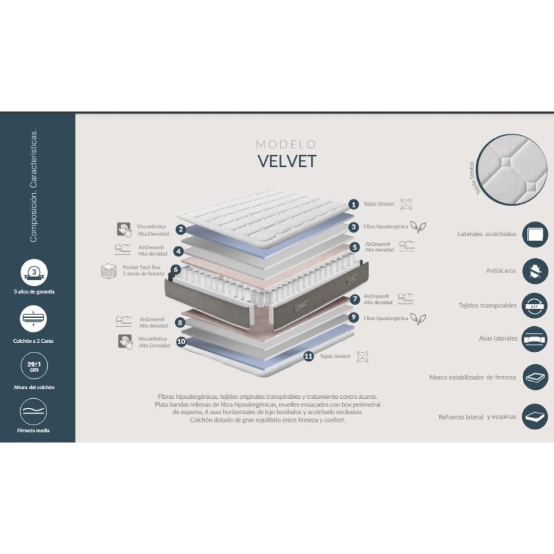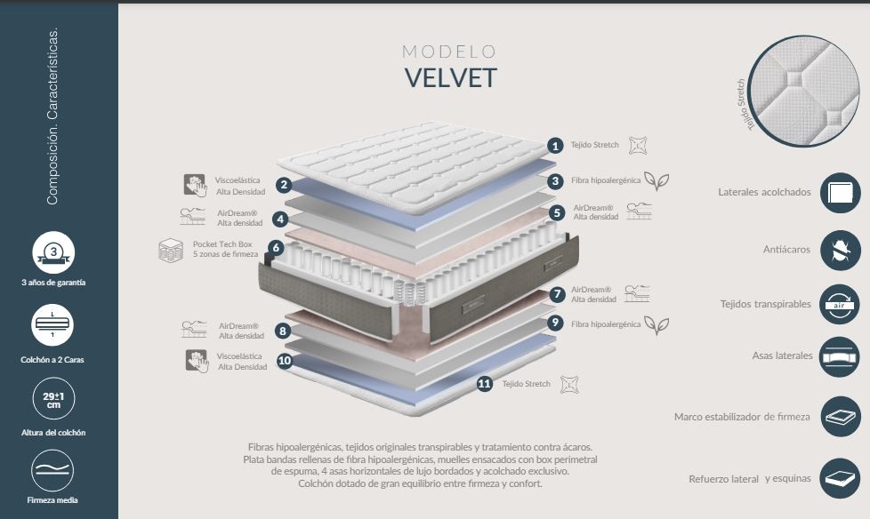 Impresionante colchon e 29cm+-1 cm ,con las mejores calidades,muelles ensacados,viscoelastico alta densidad,caja de muelles ensacados de 5 fimerzas diferentes ,un colchon de gama alta a precio sensacional y fabricacion NACIONAL.consulte precios de transporte y subida .