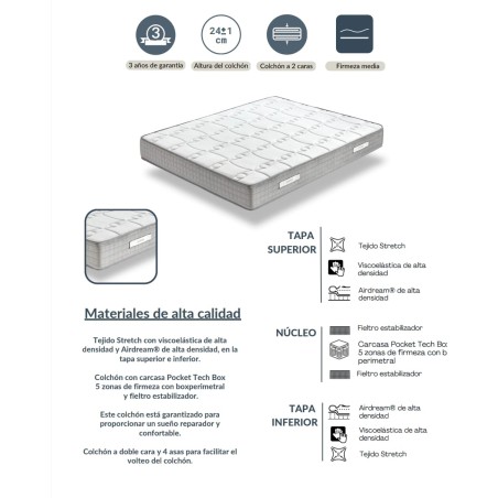 Colchon 180X200 Verso 22Cm Altura Con Airdream + Viscoelastica + Pocket Tech Box