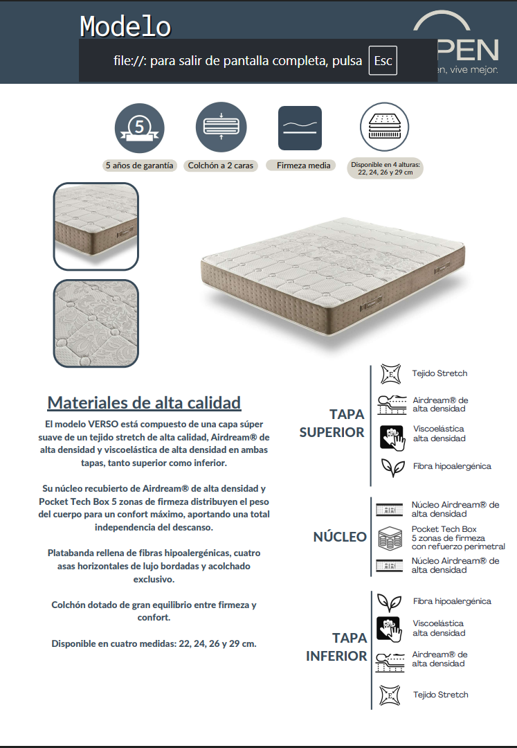 Colchon 160X190 Verso 22Cm Altura Con Airdream + Viscoelastica + Pocket Tech Box