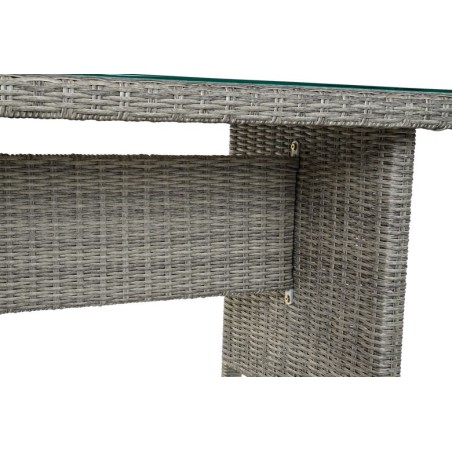 CONJUNTO DE MESA DE 60CM DE DIAMENTRO METALICA CON CRISTAL Y DOS SILLONES METALICOS CON RATAN SINTETICO EN COLOR MARRON.